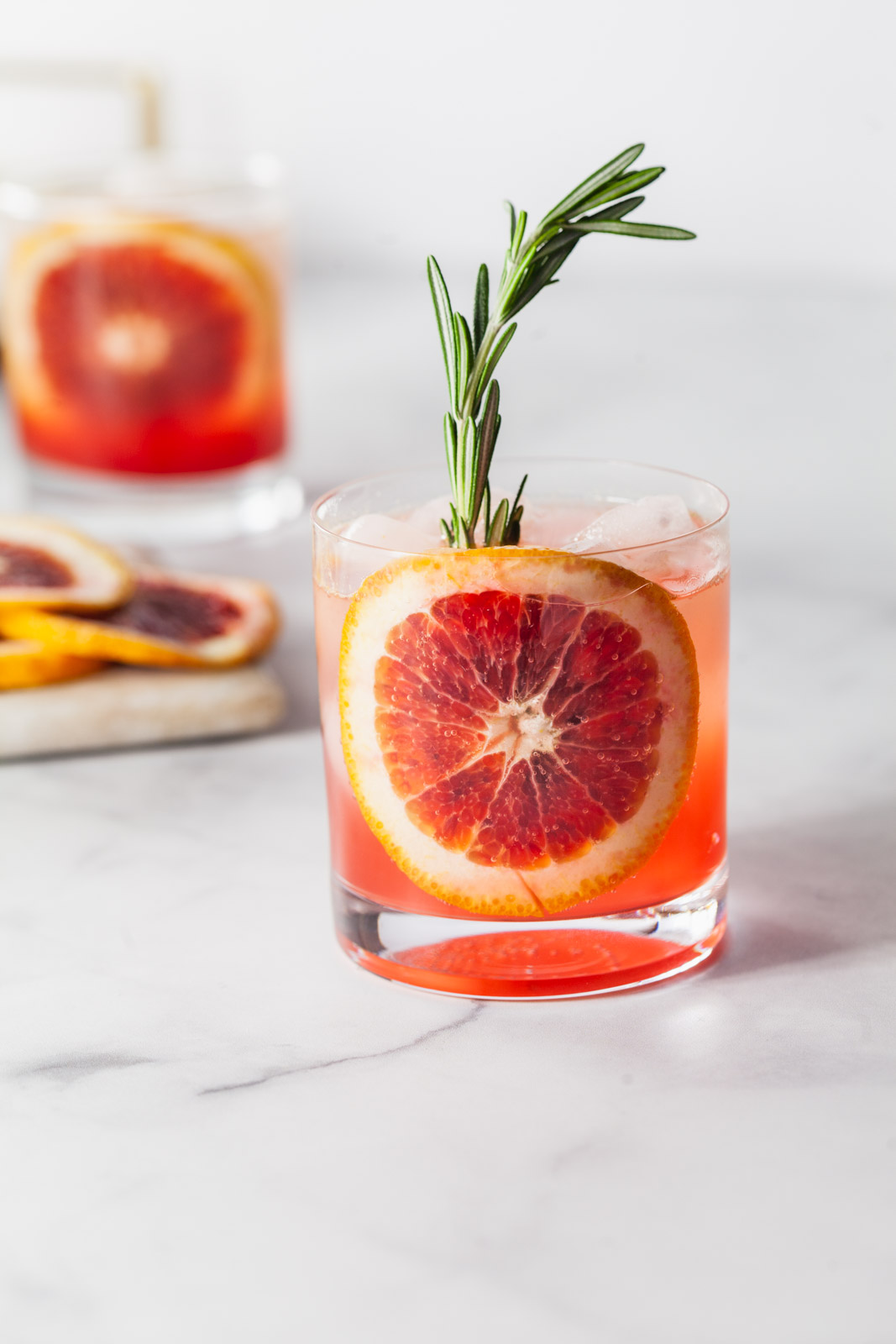 Sliced blood oranges and sprigs of rosemary to garnish
