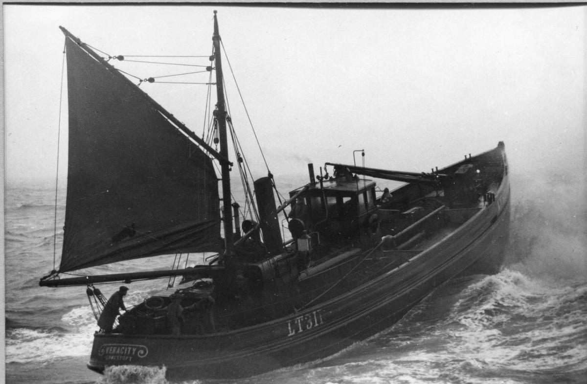 1. L.E. Richards, Eighty Years of Shipbuilding (Lowestoft, 1956), pp. 23-4. A weekly fuel cost of £5 12s 6d is cited for the vessel, which was far less than a steam drifter’s coal bill. An earlier Veracity (LT 685) had been built at Richards in 1910 and was sunk by German destroyers (along with six other, similar vessels) in February 1918, while on patrol duties in the English Channel.
